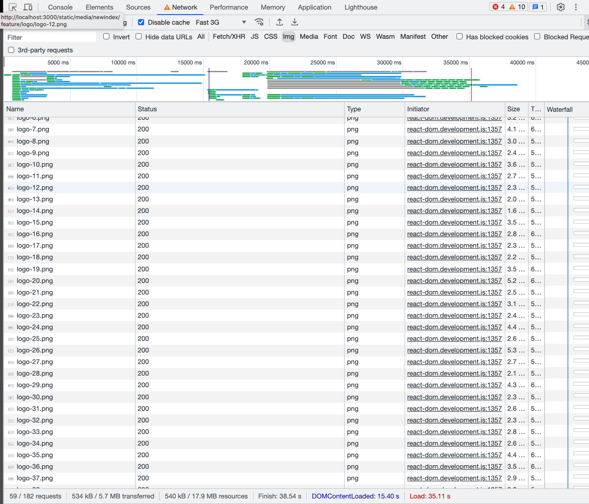 network의 속도를 Fast 3G로 측정했을 때의 변화를 확인해보자.