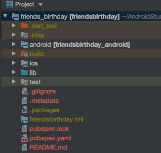 - flutter_app(프로젝트명).iml : 개발 도구에 필요한 설정 파일. 임의로 수정 x