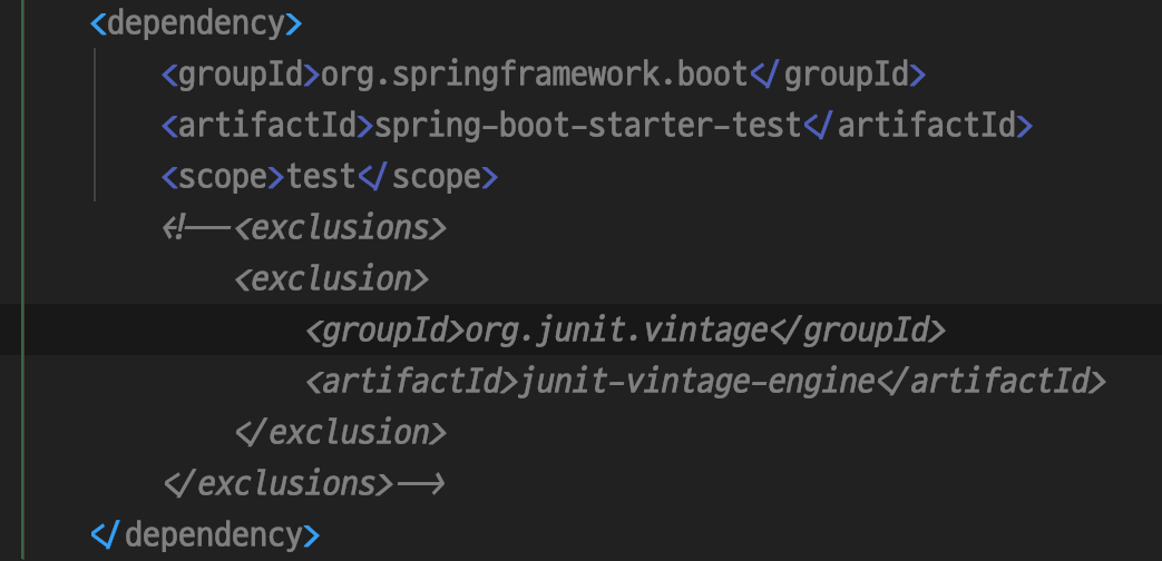 pom.xml에서 spring-boot-starter-test 의존성에서 exclusions을 삭제하면 된다!!