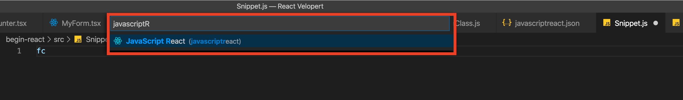 이럴 때는 오른쪽 하단의 Javascript를 클릭해서 JavaScript React로 바꿔준다