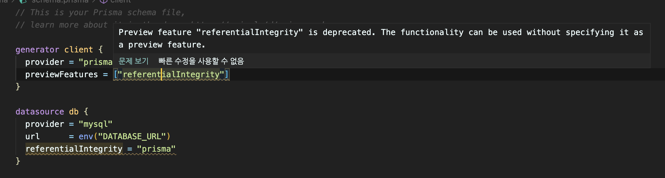 prisma previewFeatures referentialIntegrity 설정 (with PlanetScale)